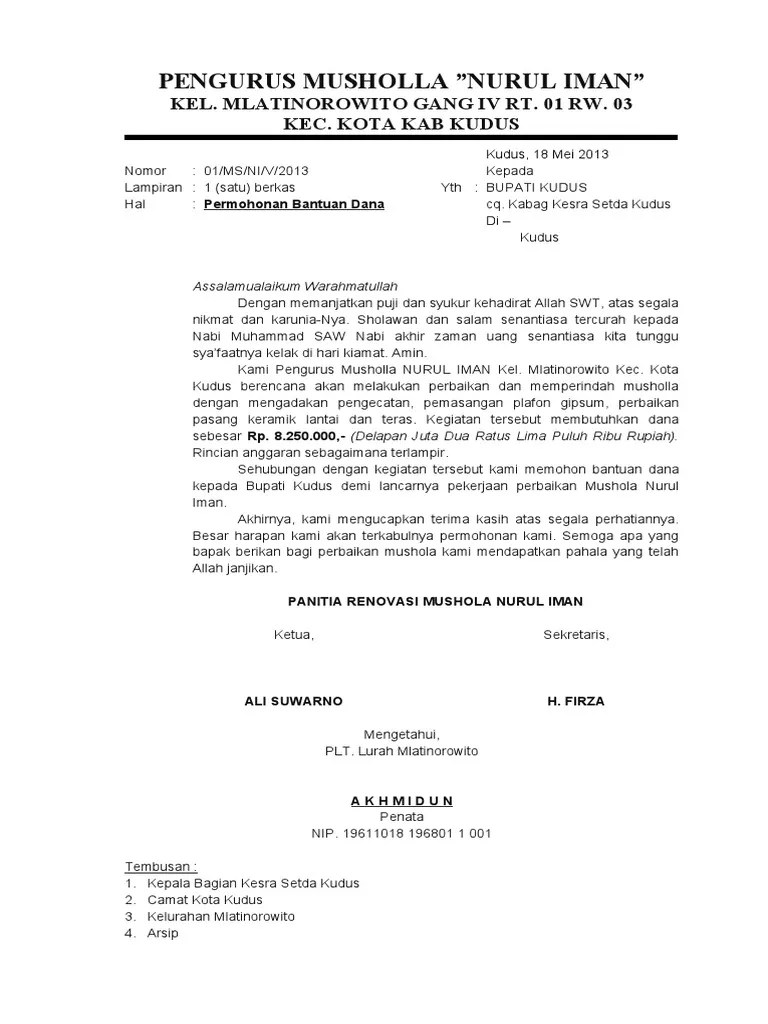 Assalamualaikum warahmatullahi wabarokaatuh.hallo selamat datang kembali di channel kang imam official, berikut ini admin mencoba upload . Selanjutnya bersama ini kami mengajukan proposal permohonan bantuan dana untuk pembangunan musholla rt. Pembangunan mushola smkn 1 nglegok kepada:. Tolong di ia.bantu cara unduh contoh proposalnya. 02 rw.05 desa adipasir kecamatan rakit kabupaten . 364603663 proposal permohonan bantuan dana pembangunan masjid docx docx proposal permohonan bantuan dana pembangunan masjid ta u2019mir . Demikian proposal bantuan dana pembangunan musholla ini kami buat,. 1 proposal pembangunan mushola amanah seksi kerohanian islam 20142 mukadimah assalamu'alaikum warahmatullahi wabarakatuh. Contoh proposal permohonan dana pembangunan atau renovasi masjid dalam format ms. Proposal permohonan dana pembangunan mushola "nurul falah" desa katonsari rt;02 rw;02 kecamatan demak kabupaten demak Demikian proposal bantuan dana pembangunan musholla ini kami buat, atas perhatian serta dikabulkannya permohonan bantuan dana ini oleh pemerintah kota .