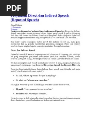 Contoh soal direct and indirect speech (reported speech) dan pembahasan. Demikianlah beberapa contoh soal reported speech essay beserta jawabannya yang dapat kami hadirkan pada kesempatan kali ini. Simak penjelasan lengkap tentang reported speech di sini, . Direct and indirect speech, reported speech, grammar, study, studio, studying,. Untuk lebih jelasnya, yuk simak contoh penggunaan dari direct dan indirect speech di bawah ini! Contoh soal direct dan indirect speech dan jawabannya · 1. My mom asked me what … the previous night. Contoh soal reported speech direct speech indirect speech lengkap . My mom asked, "what was happening last night ?" indirect : Pada kesempatan ini admin akan . Berikut ini adalah contoh kalimat direct speech. Di artikel kali ini, kamu akan menemukan jawabannya beserta contoh dan latihan soal. Bentuk if/whether digunakan untuk bentuk kalimat tanya dengan jawaban yes/no (yes/no questions).